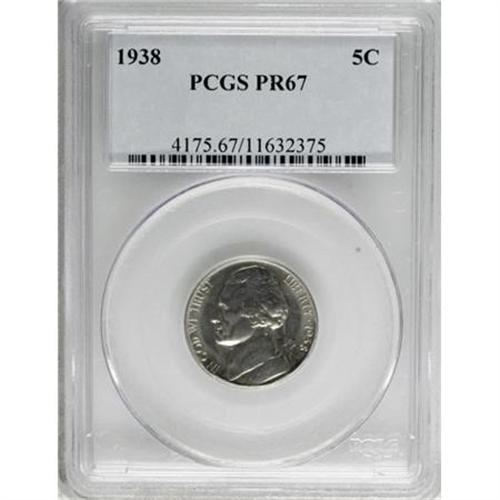 <B>1938 5C PR67 PCGS.</B></I> PCGS Population (206/11). NGC Census: (143/8). Mintage: 19,365. Numismedia Wsl. Price for NGC/PCGS coin in PR67: $280. (#4175)<BR><BR><B>Coin Engraver:</B> Felix Schlag<BR><BR><b>Shipping:</b> Coins & Currency (<a target="_blank" href="http://www.heritageauctions.com/common/shipping.php">view shipping information</a>\)