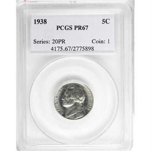 <B>1938 5C PR67 PCGS.</B></I> . PCGS Population (212/11). NGC Census: (149/8). Mintage: 19,365. Numismedia Wsl. Price for NGC/PCGS coin in PR67: $290. (#4175)<BR><BR><B>Coin Engraver:</B> Felix Schlag<BR><BR><b>Shipping:</b> Coins & Currency (<a target="_blank" href="http://www.heritageauctions.com/common/shipping.php">view shipping information</a>)