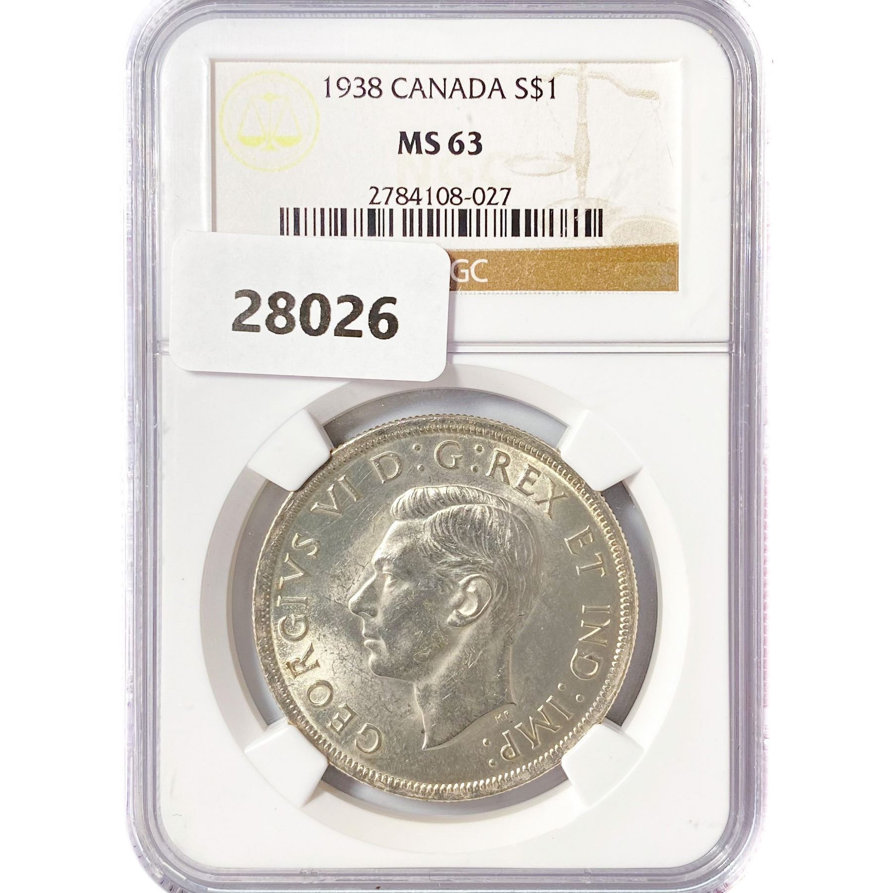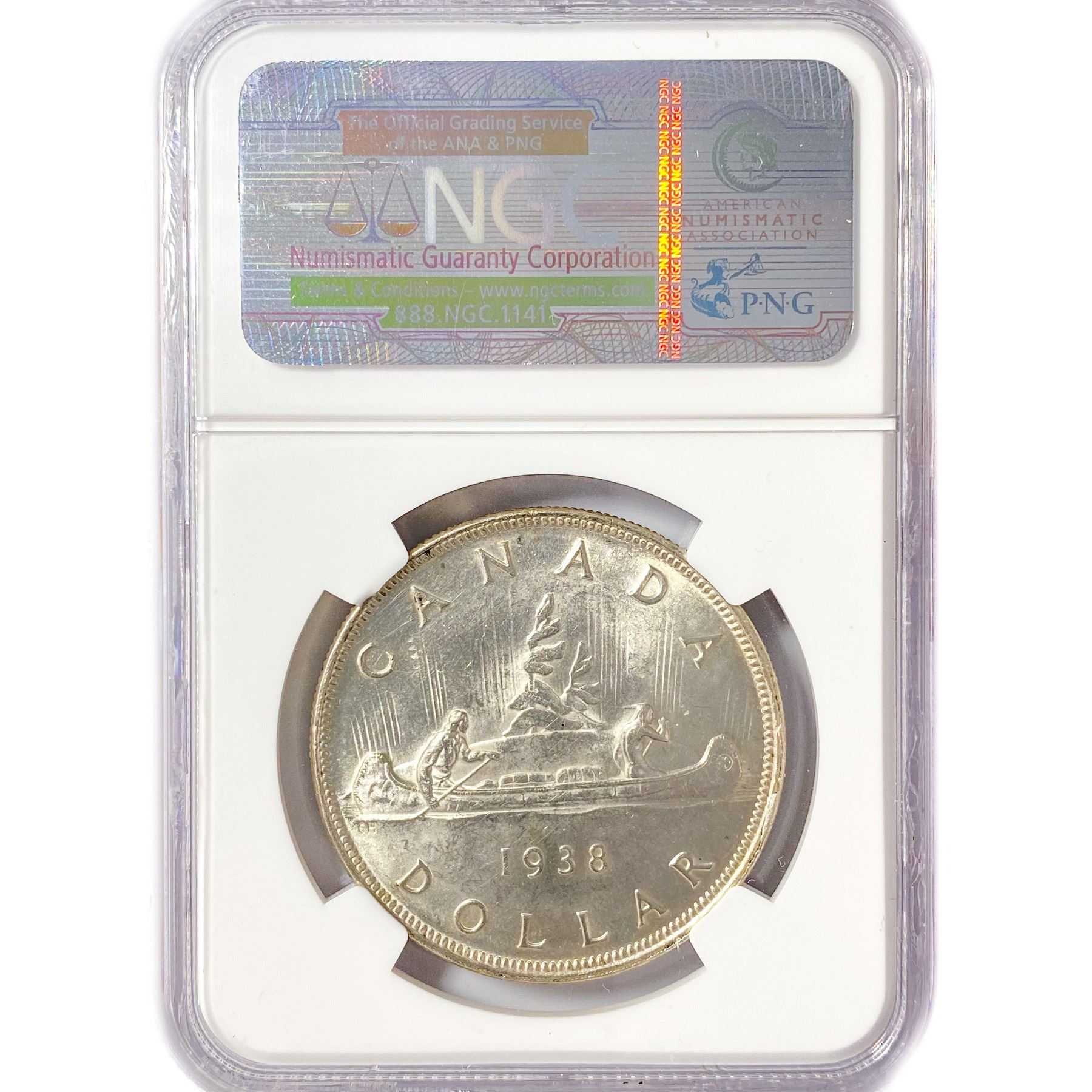 1938 .6oz Canada Silver Dollar NGC MS63