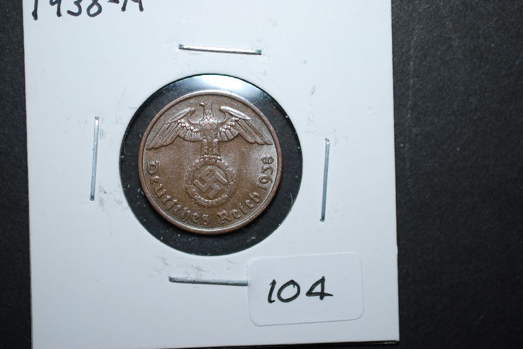 1938-A German 1 Reichspfennig Foreign Coin With Flying Eagle Holding Swatstika; EST. $10-15
