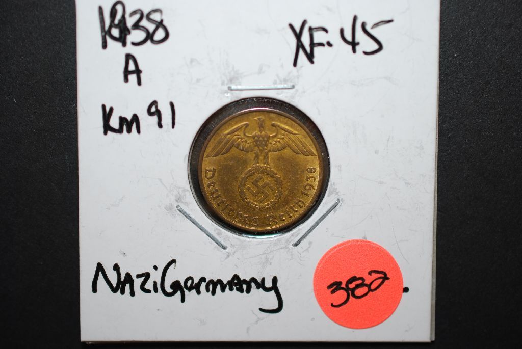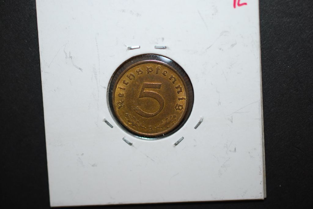1938-A German 5 Reichspfennig Foreign Coin With Flying Eagle Holding Swatstika; XF45; EST. $10-15