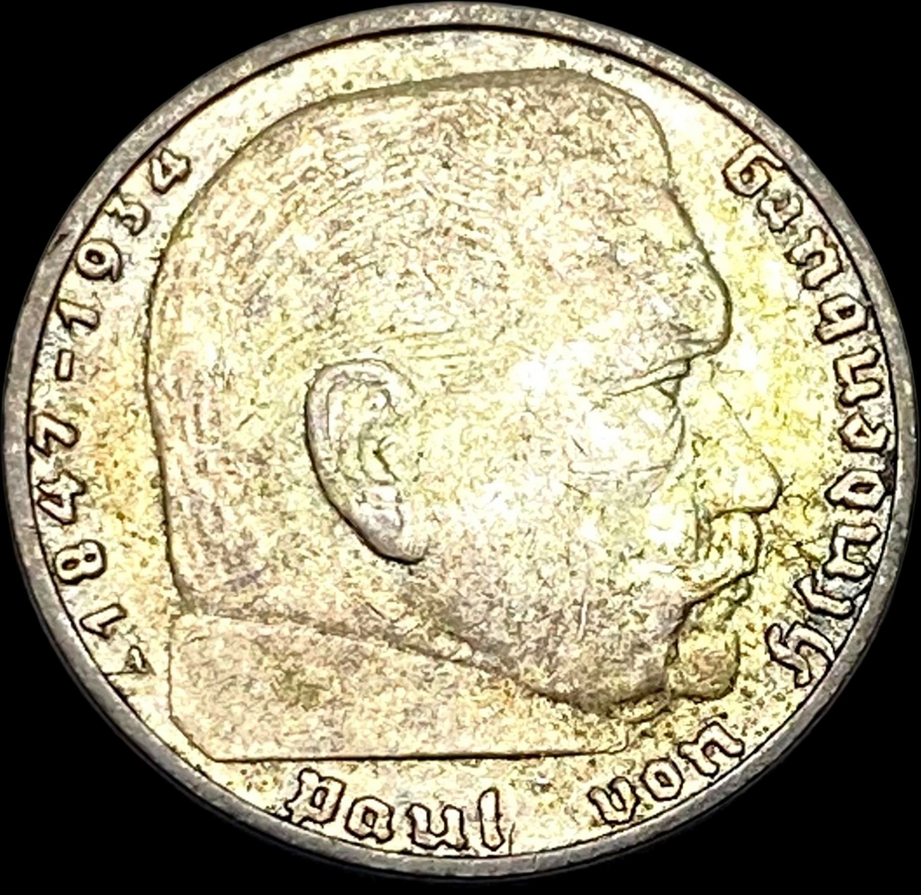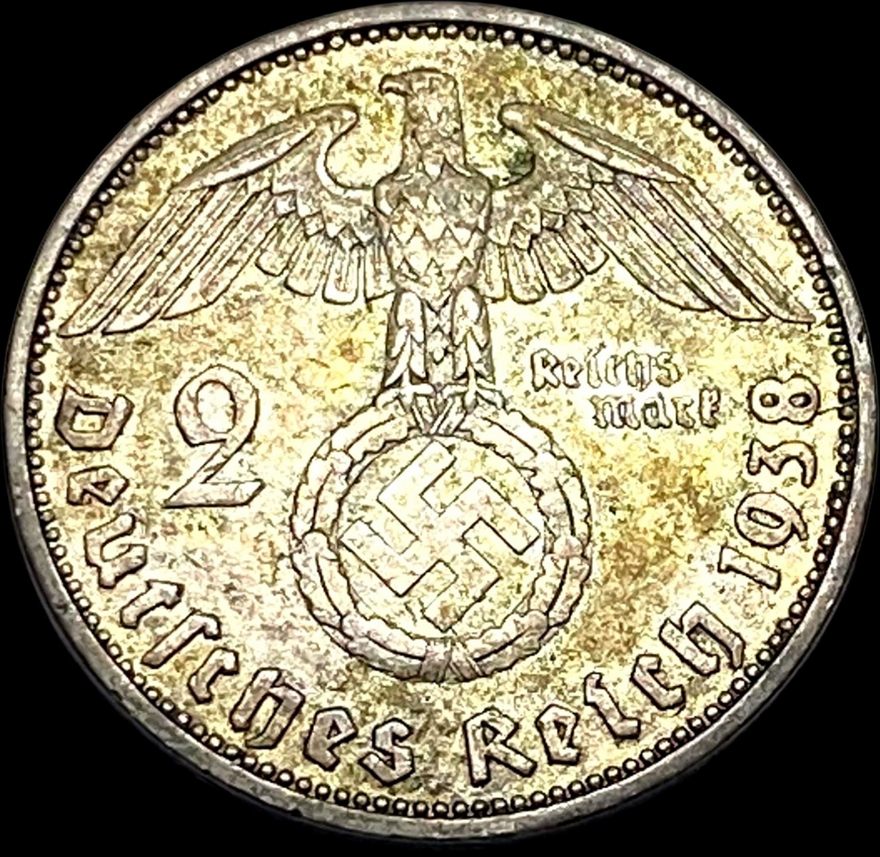 1938-A Germany Silver 2 Reichsmark CLOSELY UNCIRCULATED