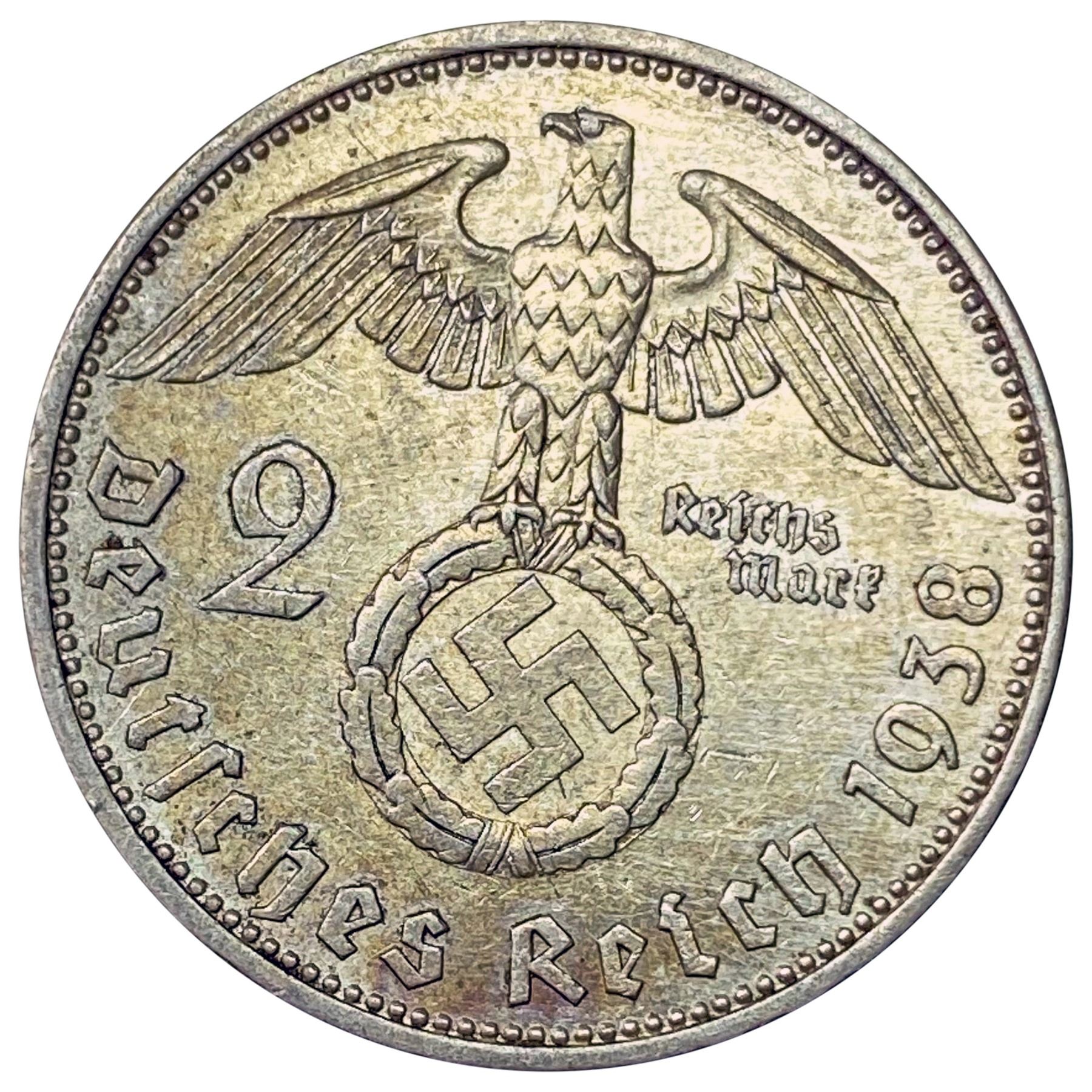 1938-A Germany Silver 2 Reichsmarks CLOSELY UNCIRCULATED