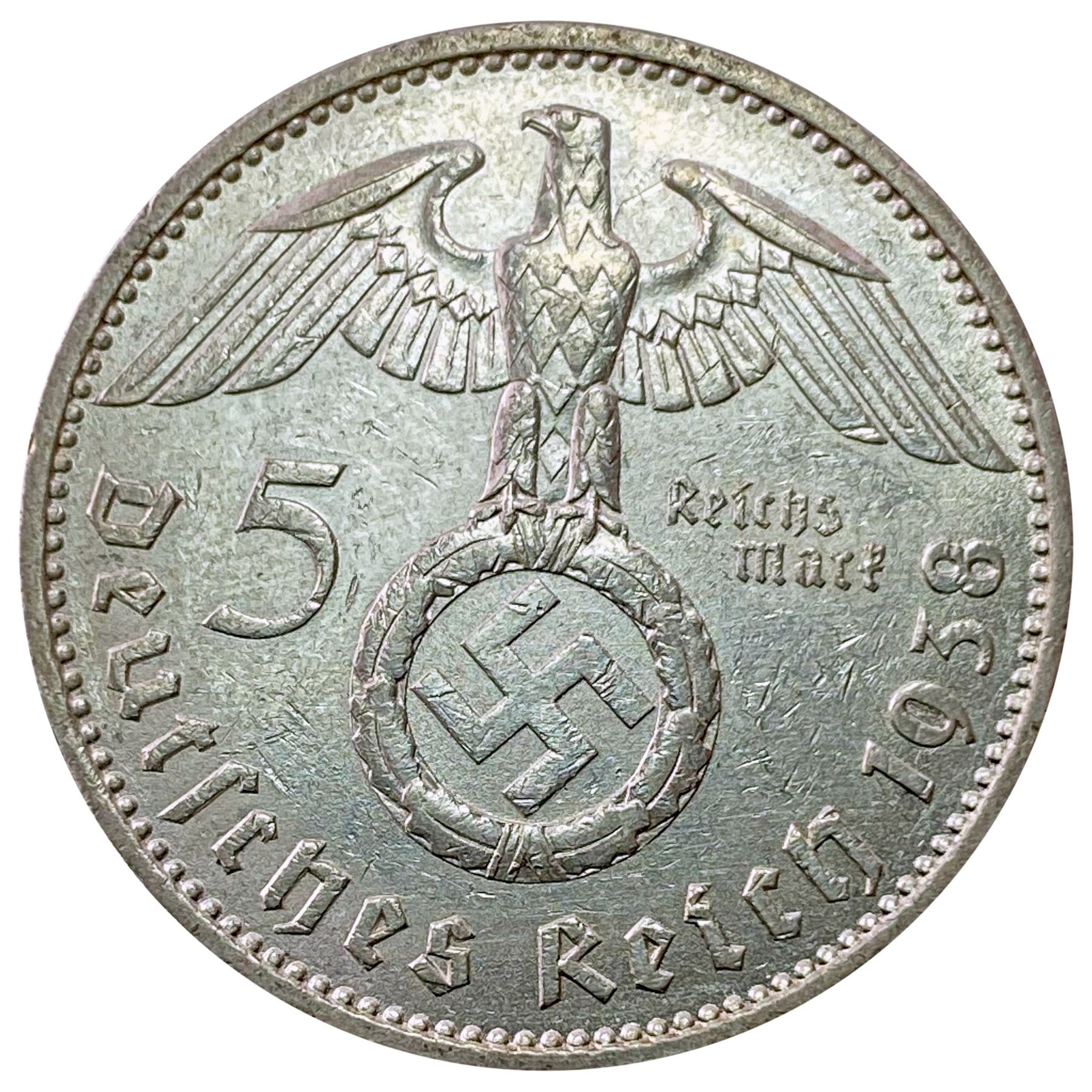 1938-A Germany Silver 5 Reichsmark CLOSELY UNCIRCULATED