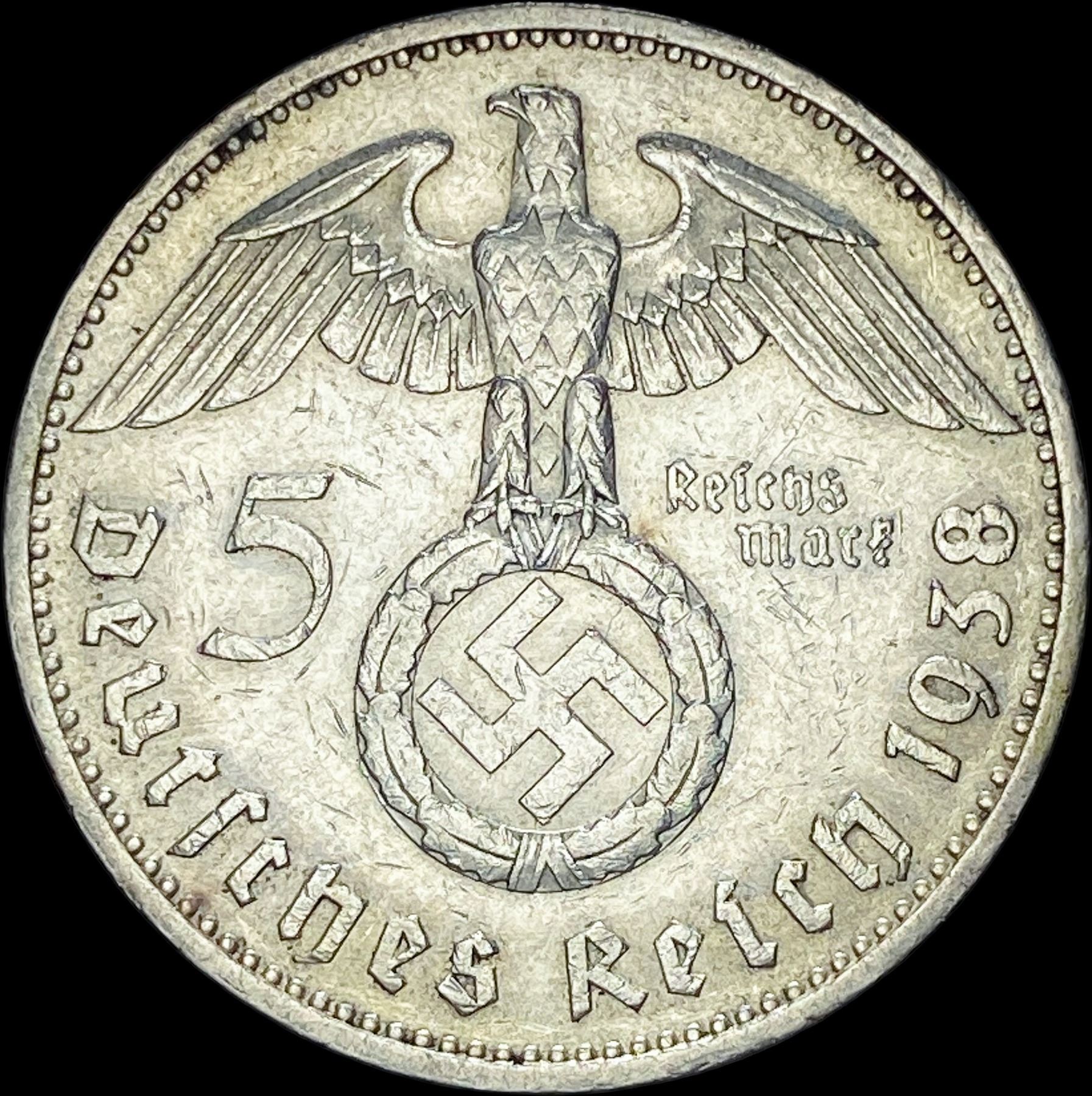 1938-A Germany Silver 5 Reichsmark CLOSELY UNCIRCULATED