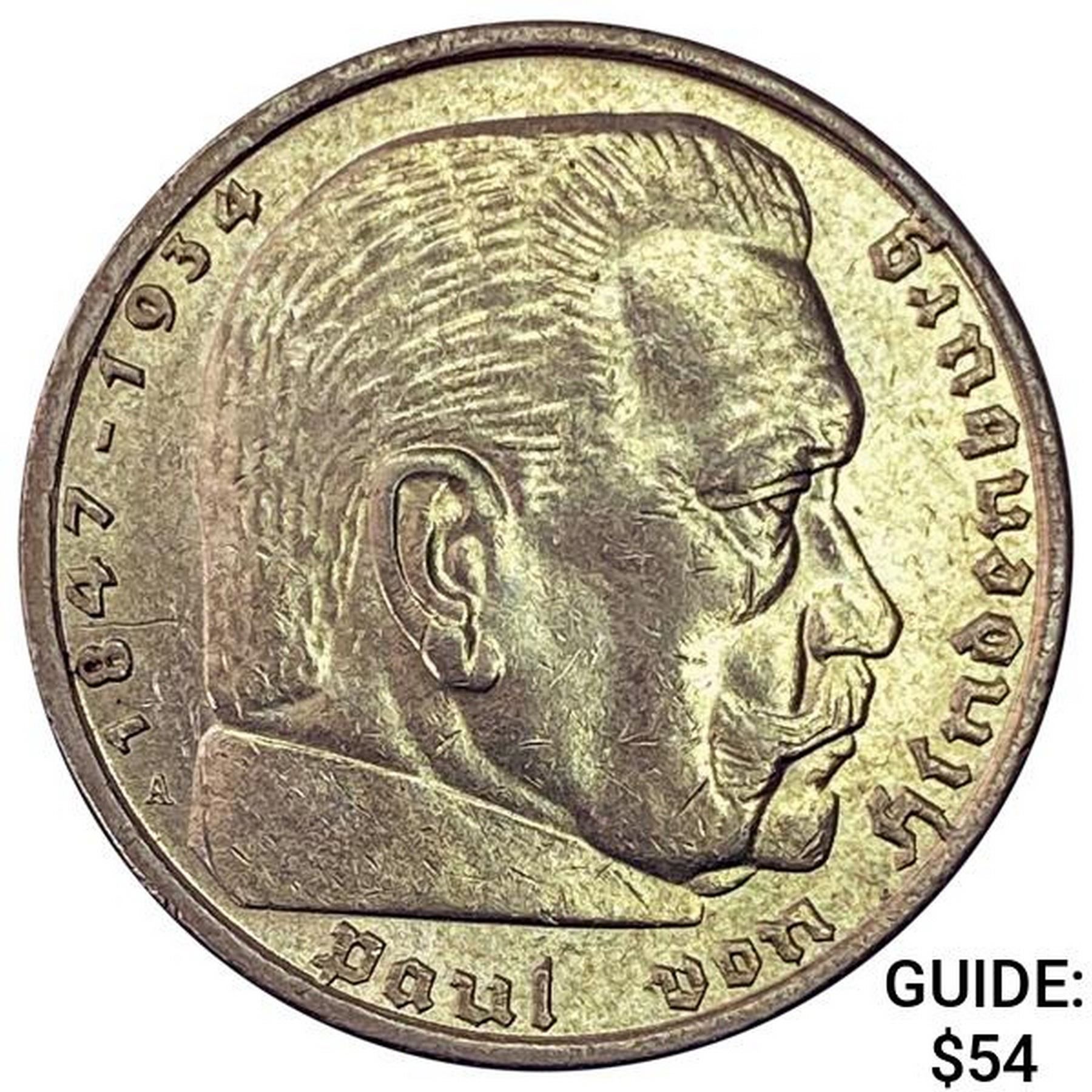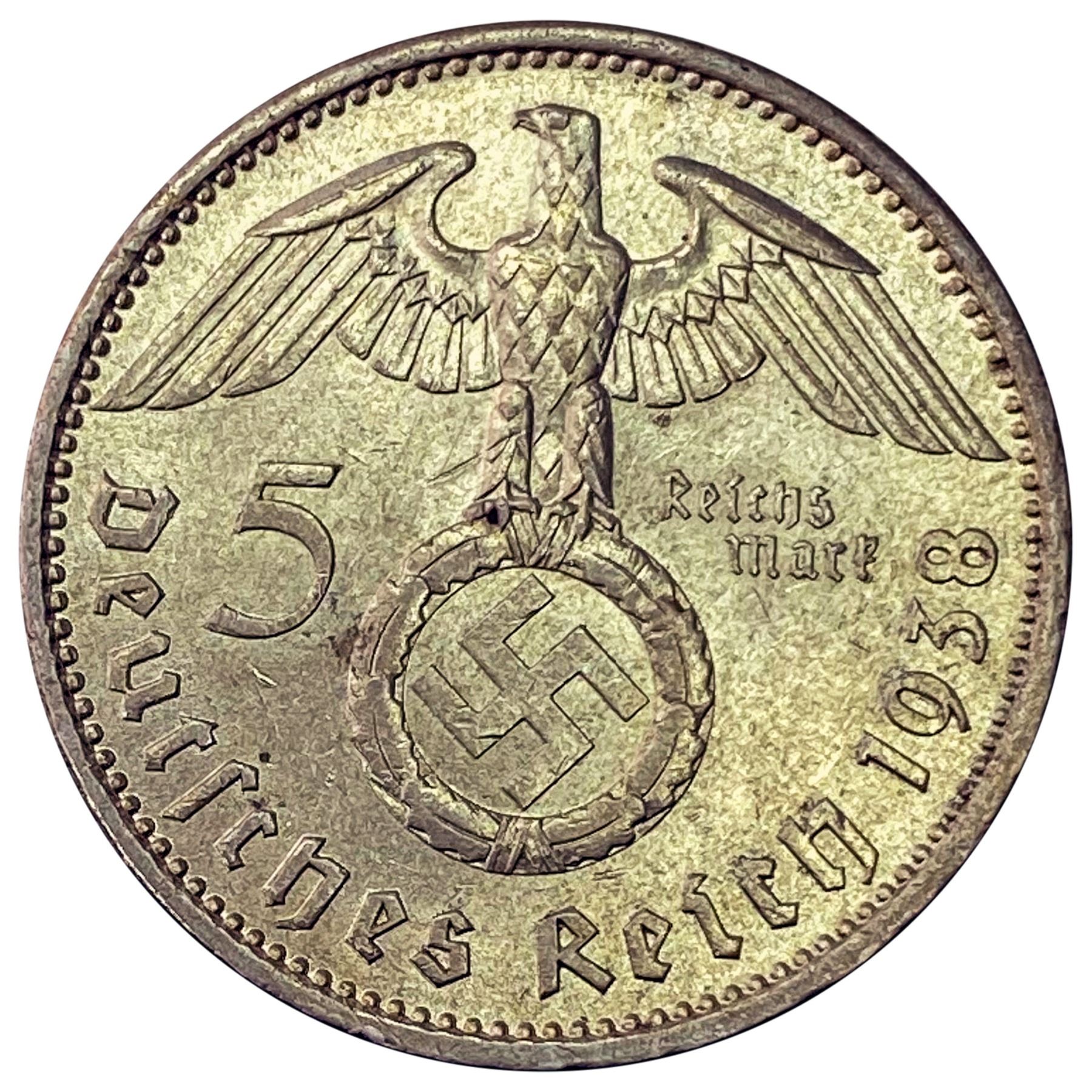 1938-A Germany Silver 5 Reichsmark UNCIRCULATED