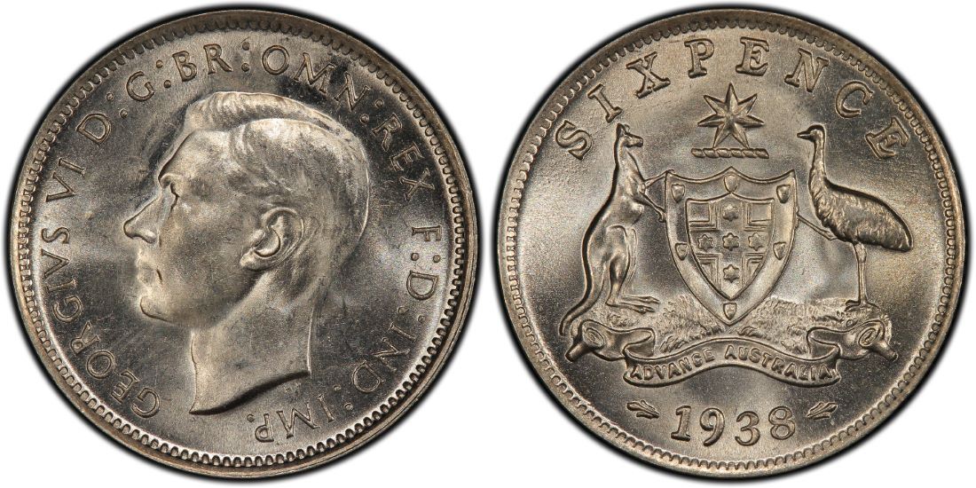 1938 Australian KGVI Sixpence - PCGS MS64