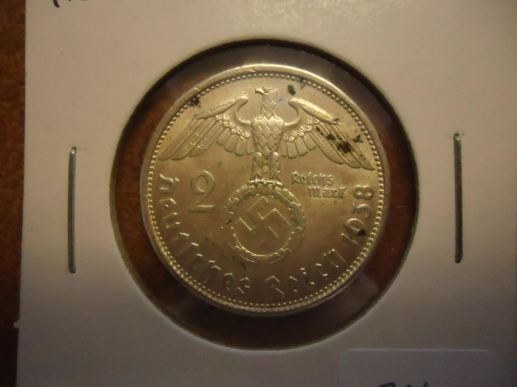 1938-B GERMAN SILVER 2 MARKS WITH SWASTIKA