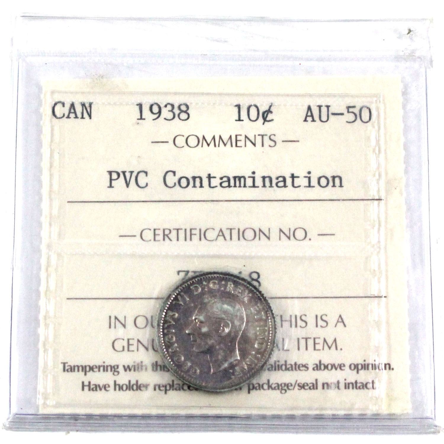 1938 Canada 10-cent ICCS Certified AU-50 ( PVC contamination)