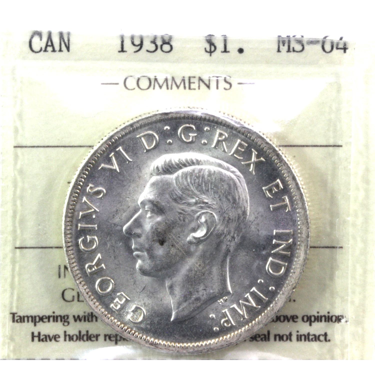 1938 Canada Silver $1 ICCS Certified MS-64.