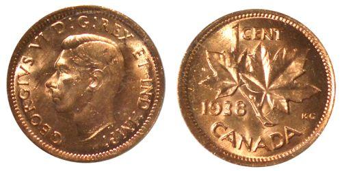 0022 - 1938 Canada Small Cent-ICCS MS64Red