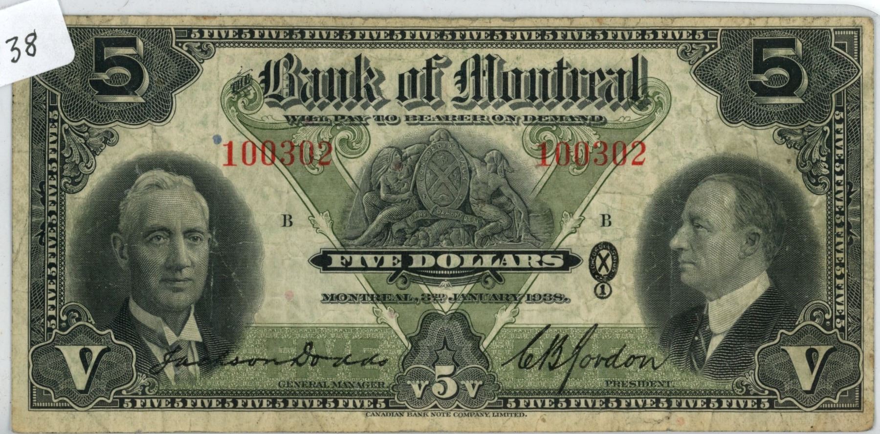1938 Canadian $5 Bill