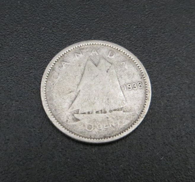 1938 Canadian Silver 10 Cent Coin