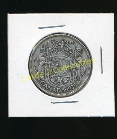 1938 Canadian Silver King George 50 Cent Coin