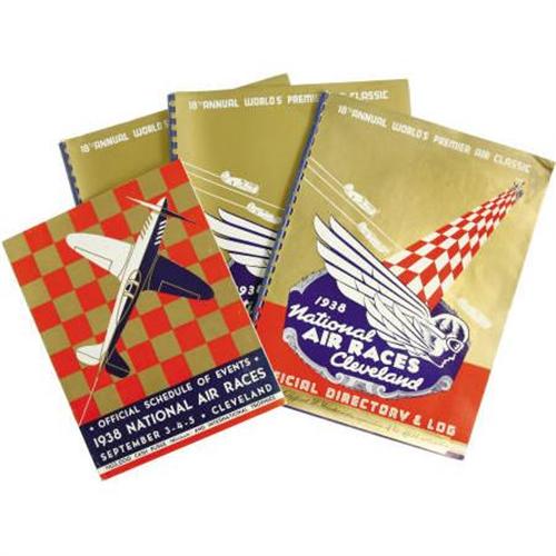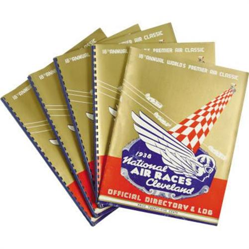 <B>Lot of 8 1938 Cleveland National Air Races Programs.</B></I> 10” x 13”, 64 pages, spiral bound, paper covers, illustrated with photographs and wonderful period advertising, all in very good or better condition. <I>From the collection of Cliff Henderson.</B></I><BR><BR><b>Shipping:</b> Books & Catalogs (<a target="_blank" href="http://www.heritageauctions.com/common/shipping.php">view shipping information</a>)