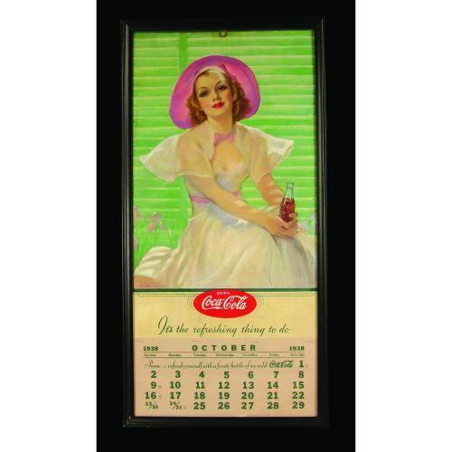 1938 Coca Cola Calendar, original band at top and Oct. page only. Excellent condition. 12 X 24 inches.