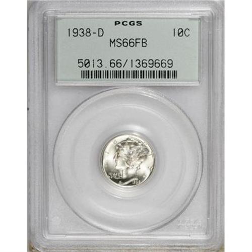 <B>1938-D 10C MS66 Full Bands PCGS.</B></I> PCGS Population (924/255). NGC Census: (528/154). Mintage: 5,537,000. Numismedia Wsl. Price for NGC/PCGS coin in MS66: $73. (#5013)<BR><BR><B>Coin Engraver:</B> Adolph A. Weinman<BR><BR><b>Shipping:</b> Coins & Currency (<a target="_blank" href="http://www.heritageauctions.com/common/shipping.php">view shipping information</a>)