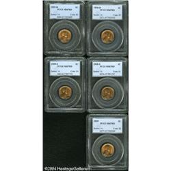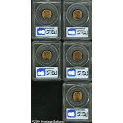 1938-D 1C MS67 Red PCGS, outstanding in all regard <B>1938-D 1C MS67 Red PCGS,</B></I> outstanding in all regards; <B>1938-S MS67 Red PCGS,</B></I> hints of steel-blue color in the centers; <B>1939 MS67 Red PCGS,</B></I> flashy, bright gold color; <B>1939-D MS67 Red PCGS,</B></I> a wisp of lilac hues on the upper reverse; and a <B>1939-S MS67 Red PCGS,</B></I> a glimpse of carbon near the O in ONE.<BR><I>From The Dennis Dewart Collection.</B></I> 5 Coins <BR><BR><B>Important notice:</B> Heritage usually auctions material at the rate of 200-250 lots per hour. On some occasions eBay Live bid software or the Internet may not be able to keep up with the pace of the auction. We recommend placing a realistic absentee bid now as insurance to avoid disappointment. Occasionally the auctioneer may eliminate or reject an eBay Live bid, and the auctioneer may also reopen a lot after the close of the eBay live bidding (usually because we missed an audience bid), and may reject your bid even if it shows you as the winning bidder. By bidding via eBay Live, you agree that Heritage may award the lot to another bidder at its sole discretion under the circumstances described above or any other reasonable circumstances. Since eBay bids are not shown to us until we open the lot on the floor, we treat those bids just like floor bids. In most cases the floor responds before the eBay bid is presented to us, due to Internet lag time, so for consistency we have made it a policy that floor bids are always considered first over tie eBay live bids. Also please note that all Heritage lots purchased through eBay Live carry a 20% Buyer's Premium. Please make sure you read the Terms and Conditions before you bid. This lot is being auctioned in conjunction with a live floor auction by Heritage Galleries & Auctioneers. All final auction and invoice information will be supplied by Heritage Galleries & Auctioneers, and all other information should be considered preliminary. Lot:5183