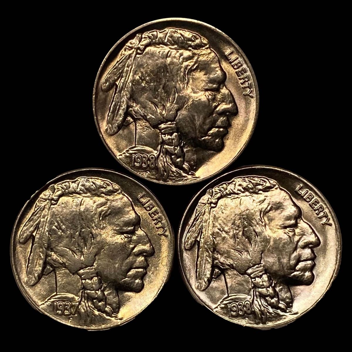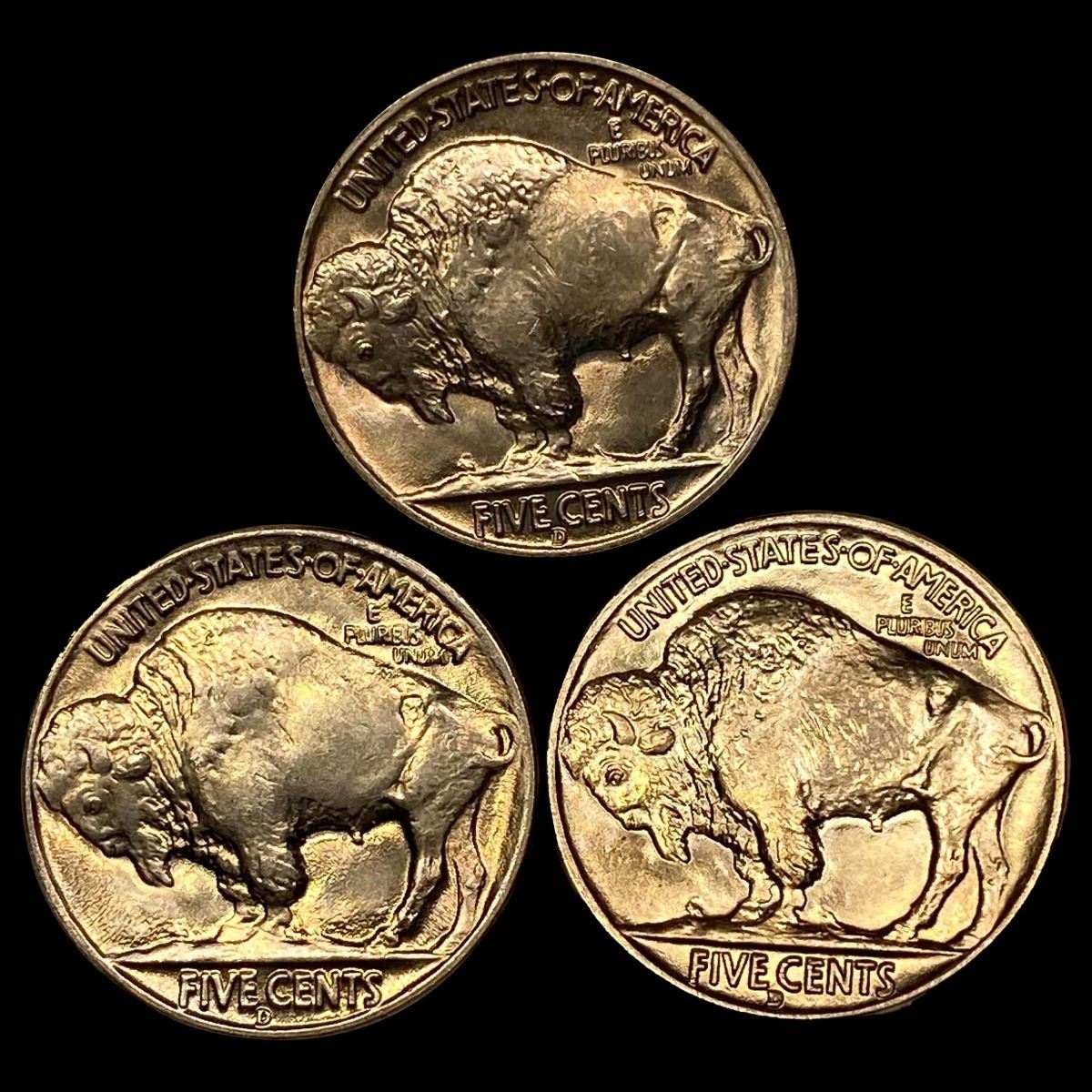 1938-D (3) Buffalo Nickels UNCIRCULATED