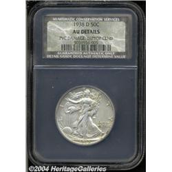 1938-D 50C AU50 Details, PVC Damage,