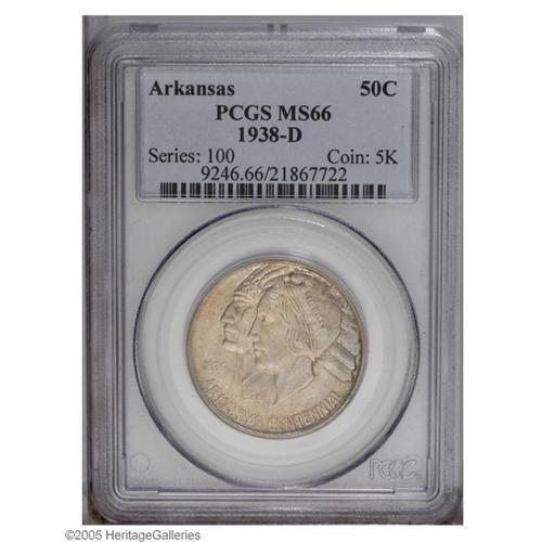 1938-D 50C Arkansas MS66 PCGS. Attractive for the issu 1938-D[50C] Arkansas MS66 PCGS.