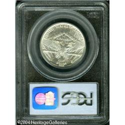 1938-D 50C Arkansas MS66 PCGS. Lustrous surfaces a <B>1938-D 50C Arkansas MS66 PCGS.</B></I> Lustrous surfaces are virtually white, and reveal just a few tiny marks on the obverse portraits. The design elements are sharply struck throughout. Population: 81 in 66, 8 finer (11/04). <BR><BR><B>Important notice:</B> Heritage usually auctions material at the rate of 200-250 lots per hour. On some occasions eBay Live bid software or the Internet may not be able to keep up with the pace of the auction. We recommend placing a realistic absentee bid now as insurance to avoid disappointment. Occasionally the auctioneer may eliminate or reject an eBay Live bid, and the auctioneer may also reopen a lot after the close of the eBay live bidding (usually because we missed an audience bid), and may reject your bid even if it shows you as the winning bidder. By bidding via eBay Live, you agree that Heritage may award the lot to another bidder at its sole discretion under the circumstances described above or any other reasonable circumstances. Since eBay bids are not shown to us until we open the lot on the floor, we treat those bids just like floor bids. In most cases the floor responds before the eBay bid is presented to us, due to Internet lag time, so for consistency we have made it a policy that floor bids are always considered first over tie eBay live bids. Also please note that all Heritage lots purchased through eBay Live carry a 20% Buyer's Premium. Please make sure you read the Terms and Conditions before you bid. This lot is being auctioned in conjunction with a live floor auction by Heritage Galleries & Auctioneers. All final auction and invoice information will be supplied by Heritage Galleries & Auctioneers, and all other information should be considered preliminary. Lot:7855