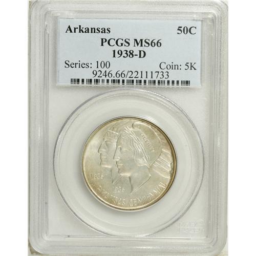 1938-D 50C Arkansas MS66 PCGS. Satiny and well struck