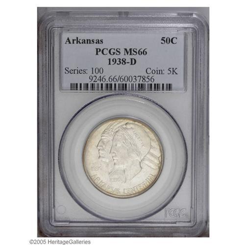 1938-D 50C Arkansas MS66 PCGS. Wisps of lavender and g 1938-D[50C] Arkansas MS66 PCGS.