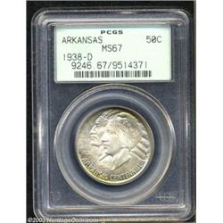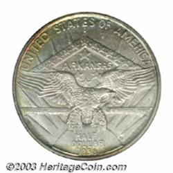 <table><tr><td><TABLE cellSpacing=0 cellPadding=0 width="100%" bgColor=#000000 border=0><TBODY> <TR><TD width="100%"><TABLE cellSpacing=1 cellPadding=3 width="100%" border=0><TBODY><TR><TD width="100%" bgColor=#79735c><FONT face=arial color=#ffffff size=3><B>Description</B> </FONT></TD></TR><TR><TD width="100%" bgColor=#ffffff><FONT face=arial size=2><B>1938-D 50C Arkansas MS67 PCGS.</B></I> A peerless dove-gray example with apricot and mint-green peripheral highlights. From a mintage of just 3,155 pieces, only a handful of similarly graded examples have been certified. Population: 7 in 67, 0 finer (10/03). </FONT></TD></TR></TBODY></TABLE></TD></TR></TBODY></TABLE><BR><A name=PricesRealized></A><TABLE cellSpacing=0 cellPadding=0 width="100%" bgColor=#000000 border=0><TBODY><TR><TD width="100%"><TABLE cellSpacing=1 cellPadding=3 width="100%" border=0><TBODY><TR><TD width="100%" bgColor=#79735c><A name=PR><FONT face=arial color=#ffffff size=3><B>Previous Prices from Heritage Auctions</B> </FONT></A></TD></TR><TR><TD bgColor=#f6f6ed><TABLE cellSpacing=0 cellPadding=0 width="100%" border=1><TBODY><TR><TD align=middle width="33%"><B>Date</B></TD><TD align=middle width="33%"><B>Service</B></TD><TD align=middle width="33%"><B>Price</B></TD></TR><TR bgColor=whitesmoke><TD width="33%"><B>05/02/1997</B></TD><TD width="33%">NGC</TD><TD width="33%">$2,640.00</TD></TR></TBODY></TABLE></TD></TR><TR><TD bgColor=#ffffff><FONT face=arial size=1 ?>PLEASE NOTE: All prices realized reflect the final hammer price PLUS the buyer's premium in auctions that charge a buyer's premium. Each item has a notation at the top of the listing indicating whether that lot included a buyer's premium. Example: A item that sells with a final hammer price of $100 and a 20% buyer's premium will display with a price realized of $120. All information listed is intended to be as accurate as possible, but errors are possible. Please use this guide carefully and inform us of any inaccuracies. </FONT></TD></TR></TBODY></TABLE></TD></TR></TBODY></TABLE><BR><TABLE cellSpacing=0 cellPadding=0 width="100%" bgColor=#000000 border=0><TBODY><TR><TD width="100%"><TABLE cellSpacing=1 cellPadding=3 width="100%" border=0><TBODY><TR><TD width="100%" bgColor=#79735c colSpan=6><FONT face=arial color=#ffffff size=3><B>Price Guide*</B> </FONT></TD></TR><TR bgColor=#f6f6ed><TD align=middle><B>Grade</B> </TD><TD align=middle><B>Coin World<BR>(Trends)</B> </TD><TD align=middle><B>Numismedia<BR>Retail</B> </TD><TD align=middle><B>Numismedia<BR>Wholesale</B> </TD><TD align=middle><B>Coin<BR>Universe</B> </TD><TD align=middle><B>Heritage<BR>Value Index</B> </TD></TR><TR bgColor=#ffffff><TD align=middle>66</TD><TD align=right>---</TD><TD align=right>---</TD><TD align=right>$1,275.00</TD><TD align=right>$2,350.00</TD><TD align=right>$1,070.00</TD></TR><TR style="FONT-WEIGHT: bold" bgColor=#cccfdd><TD align=middle>67</TD><TD align=right>---</TD><TD align=right>---</TD><TD align=right>---</TD><TD align=right>$4,400.00</TD><TD align=right>$5,165.00</TD></TR><TR bgColor=#ffffff><TD align=middle>68</TD><TD align=right>---</TD><TD align=right>---</TD><TD align=right>---</TD><TD align=right>---</TD><TD align=right>---</TD></TR><TR bgColor=#ffffff><TD colSpan=6><FONT size=1>*All information listed is intended to be as accurate as possible, but errors are possible. No item may be returned or refused based on this information which is provided as a service to our customers. You should contact each pricing source directly to determine the accuracy of this information. </FONT></TD></TR></TBODY></TABLE></TD></TR></TBODY></TABLE><BR><TABLE cellSpacing=0 cellPadding=0 width="100%" bgColor=#000000 border=0><TBODY><TR><TD width="100%"><TABLE cellSpacing=1 cellPadding=3 width="100%" border=0><TBODY><TR><TD width="100%" bgColor=#79735c><FONT face=arial color=#ffffff size=3><B>Population Guide</B> </FONT></TD></TR><TR bgColor=#ffffff><TD align=middle><!-- Begin Output of Population Grid--><TABLE cellSpacing=0 cellPadding=0 width="100%" border=0><TBODY><TR><TD vAlign=center><TABLE cellSpacing=0 width="100%" border=1 cellsadding="3"><TBODY><TR><TD vAlign=center><TABLE cellSpacing=0 cellPadding=3 width="100%" border=1><TBODY><TR><TD vAlign=center align=middle bgColor=#f0f1e8 colSpan=2 <CENTER><FONT face=Arial size=2><B>PCGS Pop </B></FONT><CENTER></CENTER></TD><TD vAlign=center align=middle bgColor=#f0f1e8 colSpan=2><CENTER><FONT face=Arial size=2><B>NGC Pop</B></CENTER></FONT></TD></TR><TR><TD vAlign=center><FONT face=Arial size=2>(67)</FONT> </TD><TD vAlign=center align=right><FONT face=Arial size=2>7</FONT> </TD><TD vAlign=center><FONT face=Arial size=2>(67)</FONT> </TD><TD vAlign=center align=right><FONT face=Arial size=2>7</FONT> </TD></TR><TR><TD vAlign=center><FONT face=Arial size=2>(>67)</FONT> </TD><TD vAlign=center align=right><FONT face=Arial size=2>0</FONT> </TD><TD vAlign=center><FONT face=Arial size=2>(>67)</FONT> </TD><TD vAlign=center align=right><FONT face=Arial size=2>0</FONT> </TD></TR></TBODY></TABLE></TD></TR></TBODY></TABLE></TD></TR></TBODY></TABLE><!-- End Output of Population Grid--></TD></TR></TBODY></TABLE></TD></TR></TBODY></TABLE><BR><TABLE cellSpacing=0 cellPadding=0 width="100%" bgColor=#000000 border=0><TBODY><TR> Important notice: Heritage usually auctions material at the rate of 200-250 lots per hour. On some occasions eBay Live bid software or the Internet may not be able to keep up with the pace of the auction. We recommend placing a realistic absentee bid now as insurance to avoid disappointment. Occasionally the auctioneer may eliminate or reject an eBay Live bid, and the auctioneer may also reopen a lot after the close of the eBay live bidding (usually because we missed an audience bid), and may reject your bid even if it shows you as the winning bidder. By bidding via eBay Live, you agree that Heritage may award the lot to another bidder at its sole discretion under the circumstances described above or any other reasonable circumstances. A