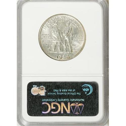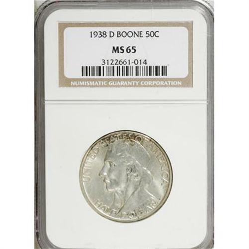 <B>1938-D 50C Boone MS65 NGC.</B></I> . NGC Census: (160/151). PCGS Population (241/200). Mintage: 2,100. Numismedia Wsl. Price for NGC/PCGS coin in MS65: $440. (#9275)<BR><BR><b>Shipping:</b> Coins & Currency (<a target="_blank" href="http://www.heritageauctions.com/common/shipping.php">view shipping information</a>)