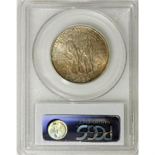 <B>1938-D 50C Boone MS65 PCGS.</B></I> PCGS Population (235/193). NGC Census: (158/148). Mintage: 2,100. Numismedia Wsl. Price for NGC/PCGS coin in MS65: $440. (#9275)<BR><I>From The Frank DuVall Collection of U.S. Commemoratives.</B></I><BR><BR><b>Shipping:</b> Coins & Currency (<a target="_blank" href="http://www.heritageauctions.com/common/shipping.php">view shipping information</a>\)