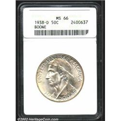 1938-D 50C Boone MS66 ANACS. The surfaces on this low mintage commemorative are satiny and typically clean, showing only a few pinpoint marks on the cheek of the frontiersman. Important notice: We expect to be auctioning lots at the rate of 200-250 per hour. Sometimes eBay Premier live bid software cannot keep up with that pace, so we strongly recommend that you place a realistic proxy bid now as insurance to avoid disappointment. Also please note that all Heritage/CAA lots purchased through eBay Premier carry a 20% Buyer's Premium.