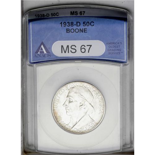 1938-D 50C Boone MS67 ANACS. Bright, satiny, and, save 1938-D[50C] Boone MS67 ANACS.
