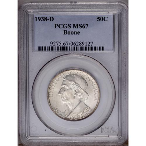 <B>1938-D<50C> Boone MS67 PCGS.</B></I> A well struck bone-white Superb Gem with satiny, nearly pristine surfaces. Faint touches of russet patina are noted on the left side of the obverse. Population: 37 in 67, 3 finer (2/06).