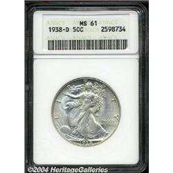 <B>1938-D<50C> MS61 ANACS.</B></I> Untoned surfaces with far fewer marks for the grade than are generally seen on this popular key.<BR><I>From the Virgil Farstad Collection, Part Two.</B></I> <BR><BR><B>Important notice:</B> Heritage usually auctions material at the rate of 200-250 lots per hour. On some occasions eBay Live bid software or the Internet may not be able to keep up with the pace of the auction. We recommend placing a realistic absentee bid now as insurance to avoid disappointment. Occasionally the auctioneer may eliminate or reject an eBay Live bid, and the auctioneer may also reopen a lot after the close of the eBay live bidding (usually because we missed an audience bid), and may reject your bid even if it shows you as the winning bidder. By bidding via eBay Live, you agree that Heritage may award the lot to another bidder at its sole discretion under the circumstances described above or any other reasonable circumstances. Since eBay bids are not shown to us until we open the lot on the floor, we treat those bids just like floor bids. In most cases the floor responds before the eBay bid is presented to us, due to Internet lag time, so for consistency we have made it a policy that floor bids are always considered first over tie eBay live bids. Also please note that all Heritage lots purchased through eBay Live carry a 20% Buyer's Premium. Please make sure you read the Terms and Conditions before you bid.