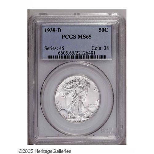 1938-D 50C MS65 PCGS. Bright, untoned surfaces radiate 1938-D[50C] MS65 PCGS.