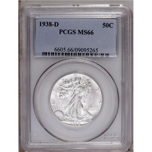 1938-D 50C MS66 PCGS. Brilliant and fully struck, the 1938-D[50C] MS66 PCGS.