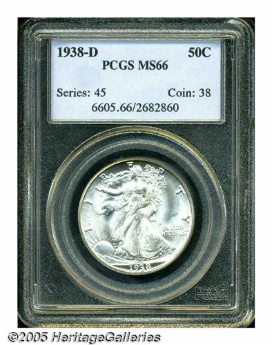 <B>1938-D<50C> MS66 PCGS.</B></I> Fully brilliant with the quality of strike and (satiny) luster that one expects of a Premium Gem. This low mintage key is surprisingly affordable at the MS66 grade level.