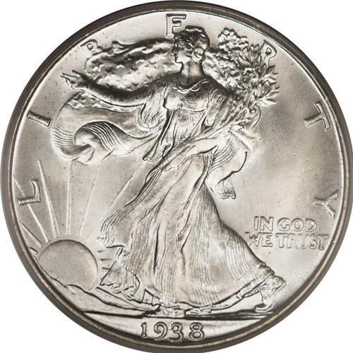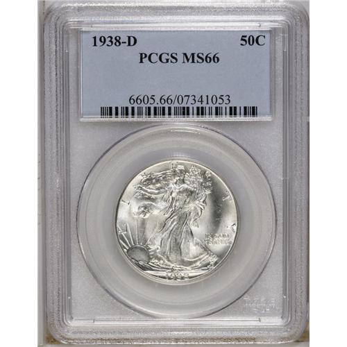 <B>1938-D 50C MS66 PCGS.</B></I> Lovely satiny effulgence shines from the untoned, silver-white surfaces of this beautiful Premium Gem half dollar. Liberty's head, thumb, and feet are all well defined, and only the eagle's right (facing) leg shows minor striking weakness on the reverse.<BR><BR><b>Shipping:</b> Coins & Currency (<a target="_blank" href="http://www.heritageauctions.com/common/shipping.php">view shipping information</a>)