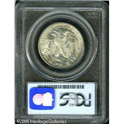 <B>1938-D 50C MS66 PCGS.</B></I> The '38-D is more available than its 491,600 mintage would indicate, yet it is relatively scarce in the lofty grades of MS66 and above. This specimen exhibits frosty luster with splashes of olive-tan patina. A few light abrasions are noted on Liberty's cheek and left leg.<BR><I>Ex: 2001 FUN Signature Sale (Heritage 1/01).</B></I><BR><I>From The Richard J. Chouinard Collection of United States Coins, Part Two.</B></I> Lot:8073