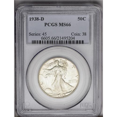 <B>1938-D<50C> MS66 PCGS.</B></I> This is an exceptional Gem example with sharp design elements and bold silver luster. Pale champagne toning is present on both sides that lends a fully original appearance.