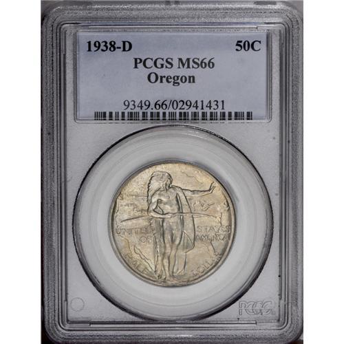 1938-D 50C Oregon MS66 PCGS. Fully struck with olive a 1938-D[50C] Oregon MS66 PCGS.