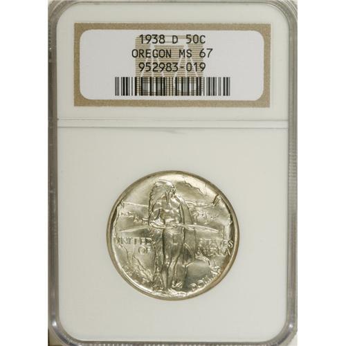 1938-D 50C Oregon MS67 NGC. Fully struck, save for a t