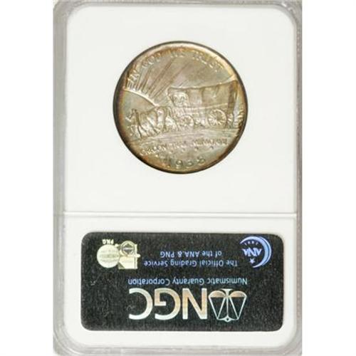 <B>1938-D 50C Oregon MS67 NGC.</B></I> Delicate peach and cornflower-blue patina drapes both sides of this Superb Gem, while the margins show a measure of gold-orange toning. Solidly struck with lovely luster, a great example from this issue of just 6,005 pieces.<BR><BR><b>Shipping:</b> Coins & Currency (<a target="_blank" href="http://www.heritageauctions.com/common/shipping.php">view shipping information</a>)