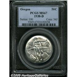 <B>1938-D 50C Oregon MS67 PCGS.</B></I> Fully struck and highly lustrous, with bright untoned surfaces that have a pleasing satiny sheen, and seem pristine. A great Superb Gem.