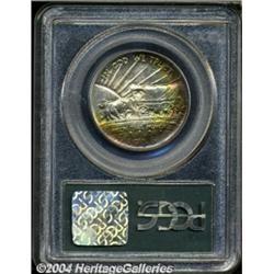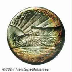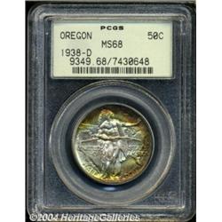 <table><tbody><tr><td><table> <TR><TD width="100%"><TABLE cellSpacing=1 cellPadding=3 width="100%" border=0><TBODY><TR><TD width="100%" bgColor=#79735c><FONT face=arial color=#ffffff size=3><B>Description</B> </FONT></TD></TR><TR><TD width="100%" bgColor=#ffffff><FONT face=arial size=2><B>1938-D 50C Oregon MS68 PCGS.</B></I> This coin has - as expected of the grade - a lot of eye appeal, most of which stems from the crimson-orange, deep russet, jade-green, and mint-green toning that overlays much of the obverse and deepens toward its periphery. Similar colors are noted on the reverse, but they are more extensive and largely confined to the right side. The razor sharp strike allows full appreciation of the bold and symbolic design, but it is the awe-inspiring combination of surface preservation and eye appeal that undoubtedly secured the MS68 grade from PCGS. A simply fabulous '38-D Oregon Commem, and one of only 165 so graded at PCGS. There is just one finer at the certification service (10/03). </FONT></TD></TR></TBODY></TABLE></TD></TR></TBODY></TABLE><BR><A name=PricesRealized></A><TABLE cellSpacing=0 cellPadding=0 width="100%" bgColor=#000000 border=0><TBODY><TR><TD width="100%"><TABLE cellSpacing=1 cellPadding=3 width="100%" border=0><TBODY><TR><TD width="100%" bgColor=#79735c><A name=PR><FONT face=arial color=#ffffff size=3><B>Previous Prices from Heritage Auctions</B> </FONT></A></TD></TR><TR><TD bgColor=#f6f6ed><TABLE cellSpacing=0 cellPadding=0 width="100%" border=1><TBODY><TR><TD align=middle width="33%"><B>Date</B></TD><TD align=middle width="33%"><B>Service</B></TD><TD align=middle width="33%"><B>Price</B></TD></TR><TR bgColor=whitesmoke><TD width="33%"><B>01/07/2004</B></TD><TD width="33%">PCGS</TD><TD width="33%">$4,140.00</TD></TR><TR bgColor=whitesmoke><TD width="33%"><B>01/11/2003</B></TD><TD width="33%">PCGS</TD><TD width="33%">$7,187.50</TD></TR></TBODY></TABLE></TD></TR><TR><TD bgColor=#ffffff><FONT face=arial size=1 ?>PLEASE NOTE: All prices realized reflect the final hammer price PLUS the buyer's premium in auctions that charge a buyer's premium. Each item has a notation at the top of the listing indicating whether that lot included a buyer's premium. Example: A item that sells with a final hammer price of $100 and a 20% buyer's premium will display with a price realized of $120. All information listed is intended to be as accurate as possible, but errors are possible. Please use this guide carefully and inform us of any inaccuracies. </FONT></TD></TR></TBODY></TABLE></TD></TR></TBODY></TABLE><BR><TABLE cellSpacing=0 cellPadding=0 width="100%" bgColor=#000000 border=0><TBODY><TR><TD width="100%"><TABLE cellSpacing=1 cellPadding=3 width="100%" border=0><TBODY><TR><TD width="100%" bgColor=#79735c colSpan=6><FONT face=arial color=#ffffff size=3><B>Price Guide*</B> </FONT></TD></TR><TR bgColor=#f6f6ed><TD align=middle><B>Grade</B> </TD><TD align=middle><B>Coin World<BR>(Trends)</B> </TD><TD align=middle><B>Numismedia<BR>Retail</B> </TD><TD align=middle><B>Numismedia<BR>Wholesale</B> </TD><TD align=middle><B>Coin<BR>Universe</B> </TD><TD align=middle><B>Heritage<BR>Value Index</B> </TD></TR><TR bgColor=#ffffff><TD align=middle>67</TD><TD align=right>---</TD><TD align=right>$810.00</TD><TD align=right>$650.00</TD><TD align=right>$900.00</TD><TD align=right>---</TD></TR><TR style="FONT-WEIGHT: bold" bgColor=#cccfdd><TD align=middle>68</TD><TD align=right>---</TD><TD align=right>---</TD><TD align=right>---</TD><TD align=right>$3,250.00</TD><TD align=right>---</TD></TR><TR bgColor=#ffffff><TD align=middle>69</TD><TD align=right>---</TD><TD align=right>---</TD><TD align=right>---</TD><TD align=right>$9,750.00</TD><TD align=right>---</TD></TR><TR bgColor=#ffffff><TD colSpan=6><FONT size=1>*All information listed is intended to be as accurate as possible, but errors are possible. No item may be returned or refused based on this information which is provided as a service to our customers. You should contact each pricing source directly to determine the accuracy of this information. </FONT></TD></TR></TBODY></TABLE></TD></TR></TBODY></TABLE><BR><TABLE cellSpacing=0 cellPadding=0 width="100%" bgColor=#000000 border=0><TBODY><TR><TD width="100%"><TABLE cellSpacing=1 cellPadding=3 width="100%" border=0><TBODY><TR><TD width="100%" bgColor=#79735c><FONT face=arial color=#ffffff size=3><B>Population Guide</B> </FONT></TD></TR><TR bgColor=#ffffff><TD align=middle><!-- Begin Output of Population Grid--><TABLE cellSpacing=0 cellPadding=0 width="100%" border=0><TBODY><TR><TD vAlign=center><TABLE cellSpacing=0 width="100%" border=1 cellsadding="3"><TBODY><TR><TD vAlign=center><TABLE cellSpacing=0 cellPadding=3 width="100%" border=1><TBODY><TR><TD vAlign=center align=middle bgColor=#f0f1e8 colSpan=2 <CENTER><FONT face=Arial size=2><B>PCGS Pop </B></FONT><CENTER></CENTER></TD><TD vAlign=center align=middle bgColor=#f0f1e8 colSpan=2><CENTER><FONT face=Arial size=2><B>NGC Pop</B></CENTER></FONT></TD></TR><TR><TD vAlign=center><FONT face=Arial size=2>(68)</FONT> </TD><TD vAlign=center align=right><FONT face=Arial size=2>16</FONT> </TD><TD vAlign=center><FONT face=Arial size=2>(68)</FONT> </TD><TD vAlign=center align=right><FONT face=Arial size=2>17</FONT> </TD></TR><TR><TD vAlign=center><FONT face=Arial size=2>(>68)</FONT> </TD><TD vAlign=center align=right><FONT face=Arial size=2>1</FONT> </TD><TD vAlign=center><FONT face=Arial size=2>(>68)</FONT> </TD><TD vAlign=center align=right><FONT face=Arial size=2>0</FONT> </TD></TR></TBODY></TABLE></TD></TR></TBODY></TABLE></TD></TR></TBODY></TABLE><!-- End Output of Population Grid--></TD></TR></TBODY></TABLE></TD></TR></TBODY></TABLE><BR><TABLE cellSpacing=0 cellPadding=0 width="100%" bgColor=#000000 border=0><TBODY><TR> <font color='#000000'><span style='background-color: #FFFFFF'><td bgcolor='#FFFFFE'> Important notice: Heritage usually auctions material at the rate of 200-250 lots per hour. On some occasions eBay Live bid software or the Internet 