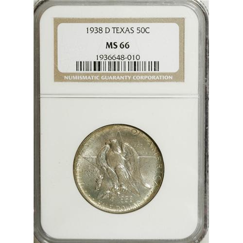 1938-D 50C Texas MS66 NGC. A satiny Premium Gem that e