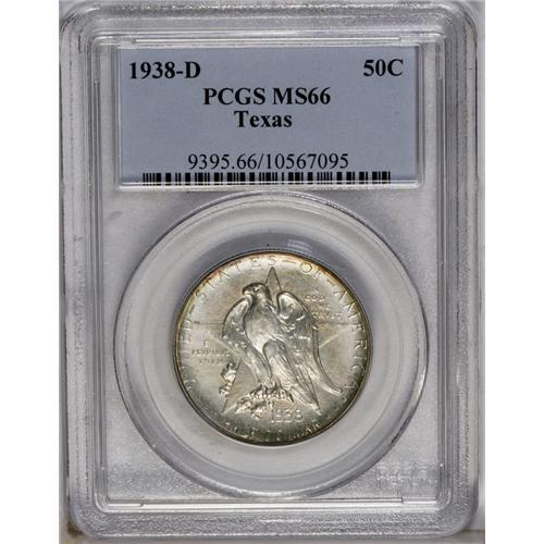 1938-D 50C Texas MS66 PCGS. Rings of russet, lilac, an