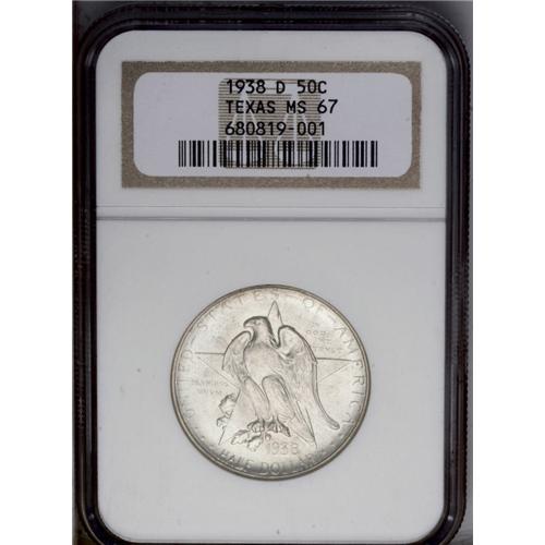1938-D 50C Texas MS67 NGC. A remarkable Superb Gem exa 1938-D[50C] Texas MS67 NGC.