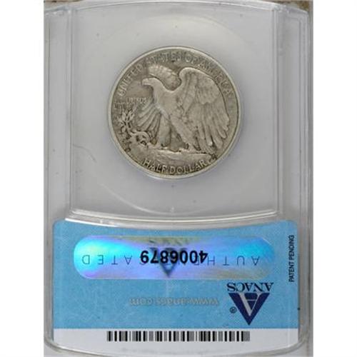 <B>1938-D 50C VF30 ANACS.</B></I> NGC Census: (13/1090). PCGS Population (35/2246). Mintage: 491,600. Numismedia Wsl. Price for NGC/PCGS coin in VF30: $118. (#6605)<BR><BR><B>Coin Engraver:</B> Adolph A. Weinman<BR><BR><b>Shipping:</b> Coins & Currency (<a target="_blank" href="http://www.heritageauctions.com/common/shipping.php">view shipping information</a>)